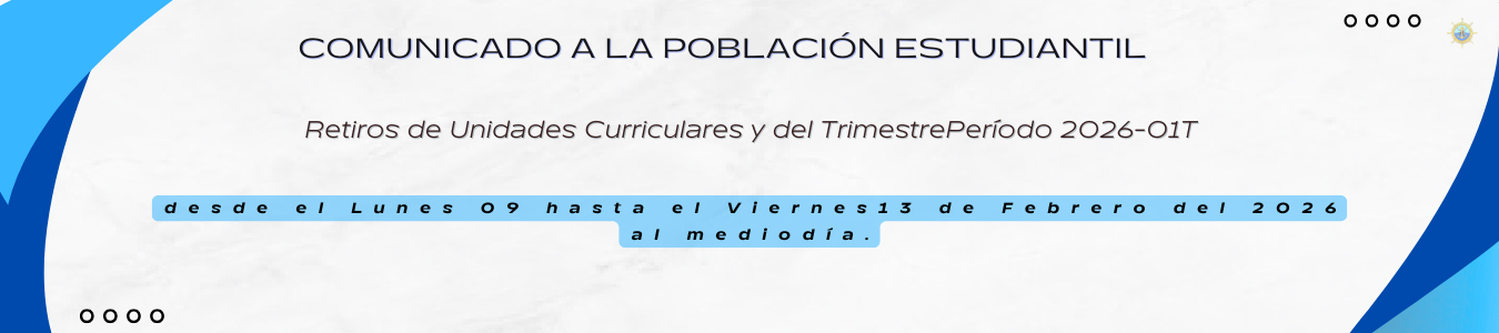 Se iniciara el proceso de recepción de las solicitudes para el Periodo Académico 2026-01T; tal como se describe a continuación: